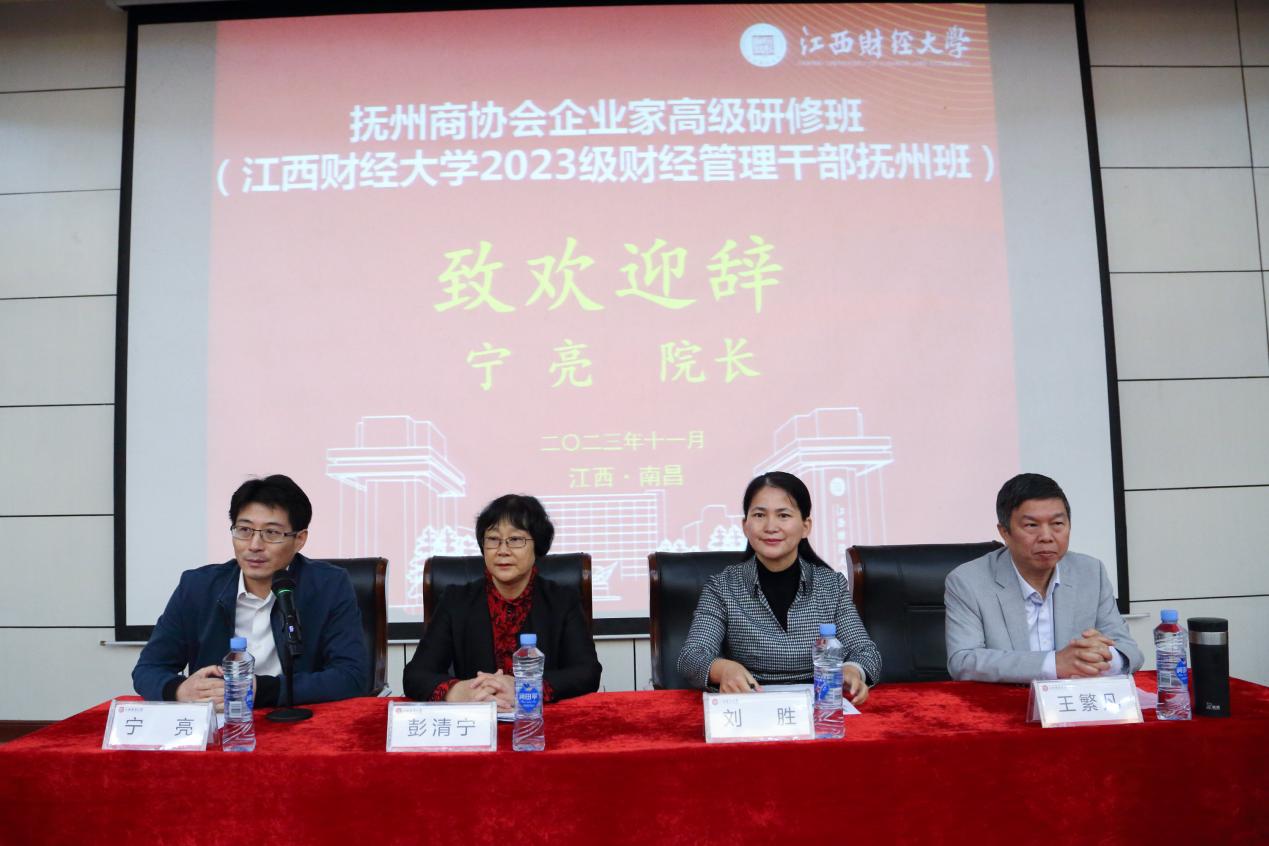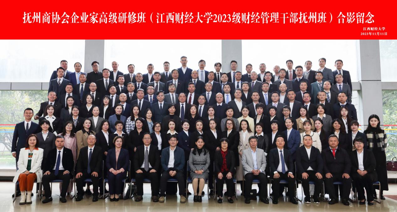 2023年11月11日上午,抚州商协会企业家高级研修班(江西财经大学2023级财经管理干部抚州班)开班仪式在江西财经大学青山园校区学术报告厅隆重举行。抚州市政协副主席、民建抚州市主委刘胜,江西财经大学校党委常委、统战部部长彭清宁,抚州市工商联副主席王繁凡,抚州商协会企业家高级研修班(江西财经大学2023级财经管理干部抚州班)100余名学员参加了开班仪式。