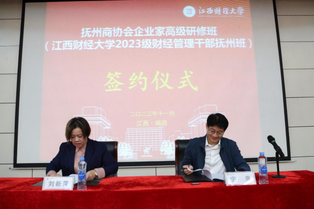 开班仪式第一项议程,抚州市民建企业家协会会长刘新萍与江西财经大学体育博彩 院长宁亮代表双方签署了战略合作协议,这标志着江西财经大学体育博彩 与抚州企业家商企协会的深度合作取得了实质性的进展。