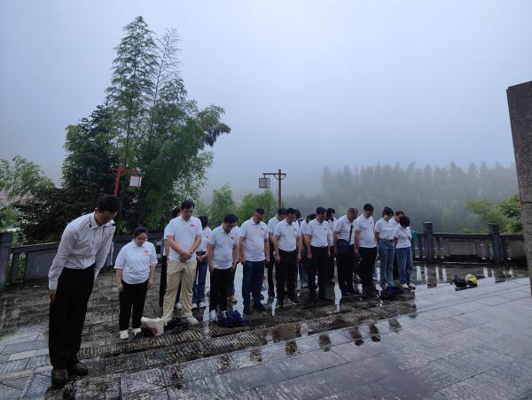 青山埋白骨,绿水悼忠魂。在革命烈士纪念碑前,大家怀着沉重的心情在雨中集体默哀,鞠躬致敬